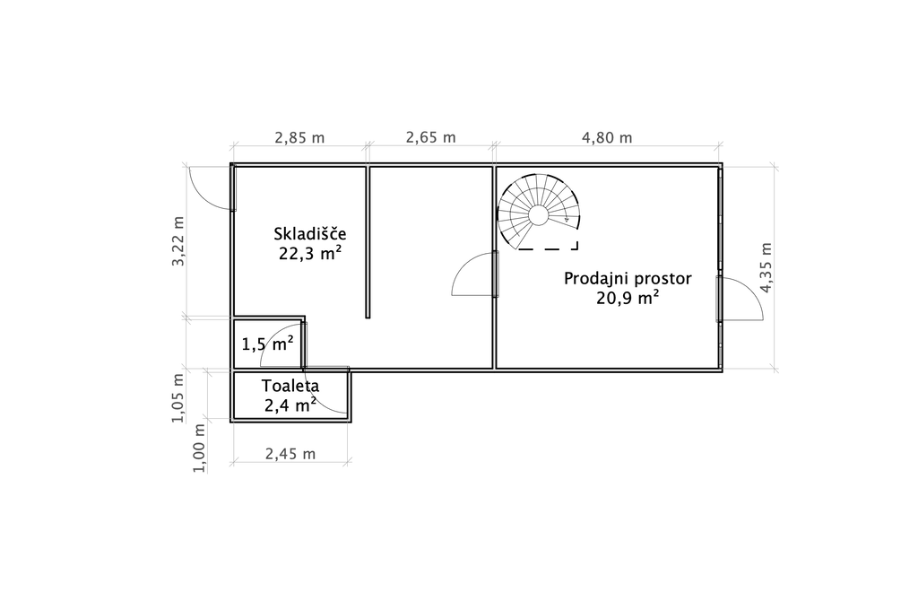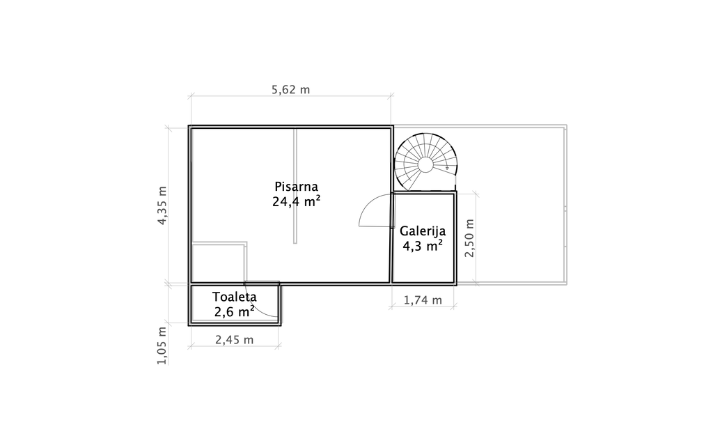 Velikost: 47,1 m2 + 31,3 m2 (galerija, višina = 2,2 m)